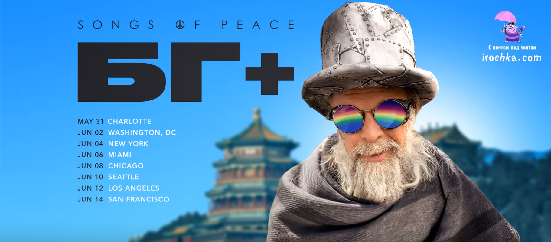 После аншлагов на концертах в самых разных точках Европы и выхода самой обсуждаемой пластинки этой осени – нового альбома группы Аквариум "Дом Всех Святых", Борис Гребенщиков выступит в США- Шарлотте, Вашингтоне, Нью Йорке, Майами, Чикаго, Сиэтле, ЛА и Сан Франциско.Программа состоит как из новых песен, так и из "аквариумной" классики, и, как утверждают меломаны и поклонники творчества Бориса Борисовича из разных стран, удивительным образом совмещает в себе "вечность и актуальность".В 2022 году группа "Аквариум" собиралась отмечать 50 лет своей творческой деятельности. Война в Украине отменила празднование этого юбилея, и "Аквариум" прекратил любые гастроли. Но чтобы не оставлять своих слушателей совсем без музыки, был собран временный партизанский состав БГ+.БГ+ это БГ, Александр Титов (бас), Брайан Финнеган (флейта), Константин Туманов (клавишные и аккордеон), а иногда к ним присоединяются и другие участники "Аквариума" - Глеб Гребенщиков (перкуссия), Лиам Брэдли (ударные). В этом составе группа уже объездила десятки стран мира, выступая на самых разнообразных площадках.В планах коллектива продолжать эти "бесконечные" гастроли, чтобы музыкой, насколько это возможно, лечить раны, нанесенные сегодняшним бредом.