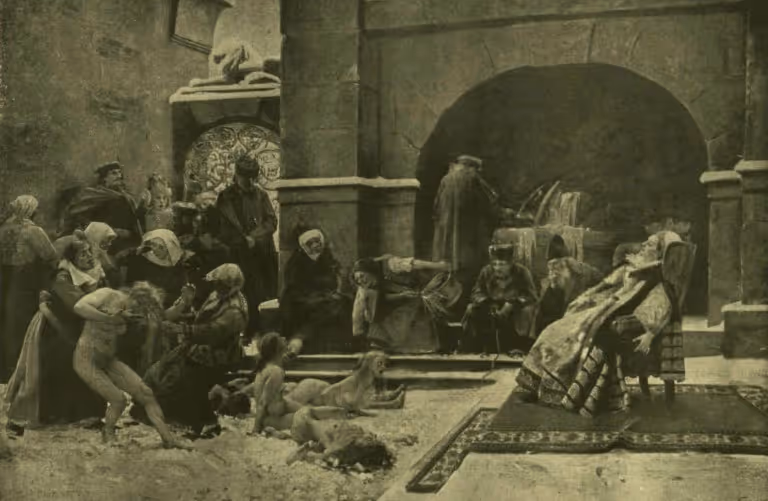 Bernard R. Maybeck was chosen as architect for the Palace of Fine Arts. A student of the École des Beaux-Arts, his design reflects the impression of a Roman ruin. The inspiration for the Palace, with its soaring colonnade, grand rotunda, and carefully constructed pond, was meant to evoke quiet sadness and solemnity. This is most evident as one observes the “weeping ladies” facing into the tops of the columns throughout the park. While visiting a museum in Munich, Maybeck was struck by the Hungarian artist István Csók’s depiction of a scene where the notorious Polish princess Elizabeth Bathory is seen throwing freezing water on her naked servants.
